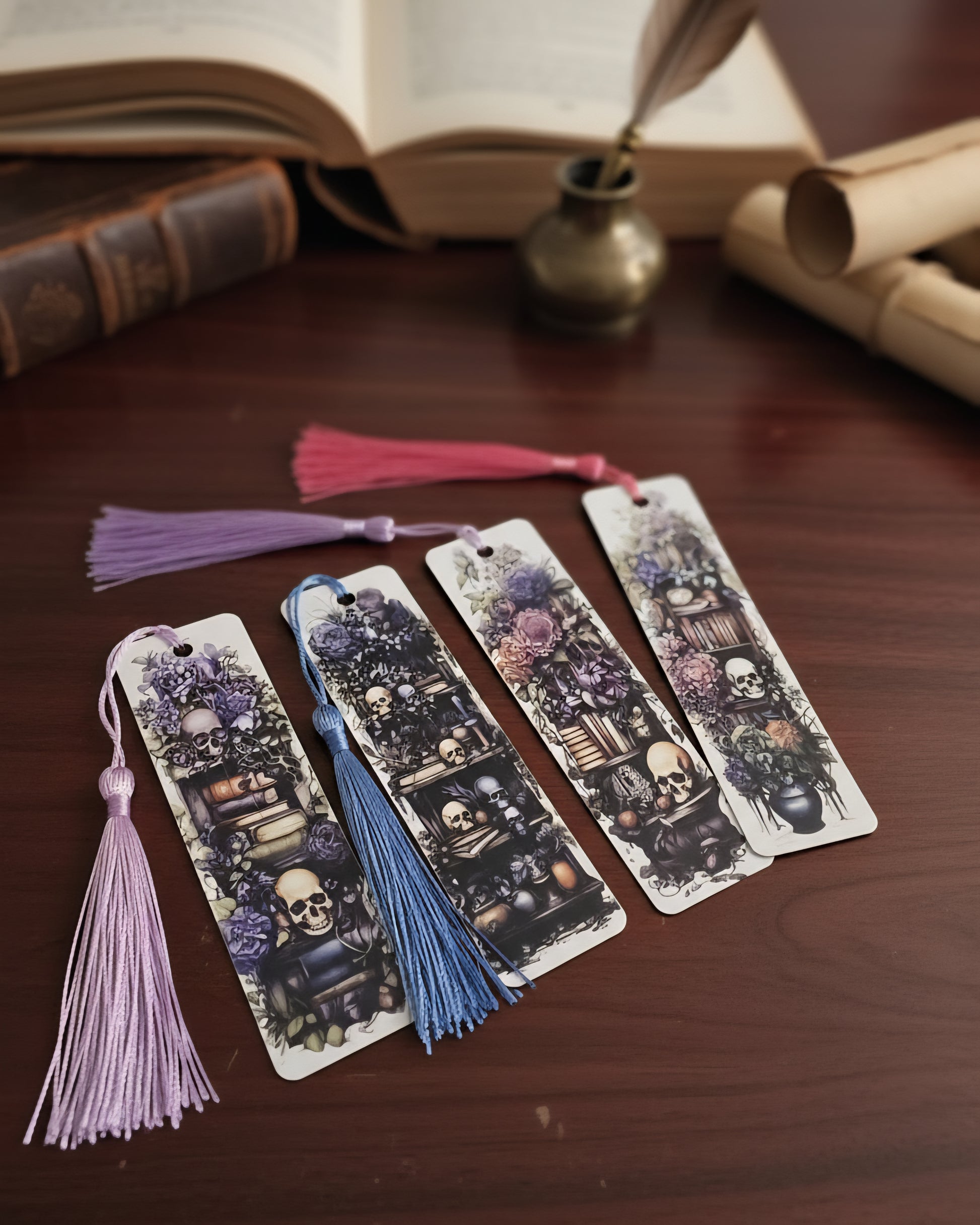 The Apothecary design of these metal bookmarks brings a touch of vintage charm to any reading experience. With a single-sided design, these bookmarks are both functional and aesthetically pleasing. This set of four ensures you always have a bookmark on hand for any book.