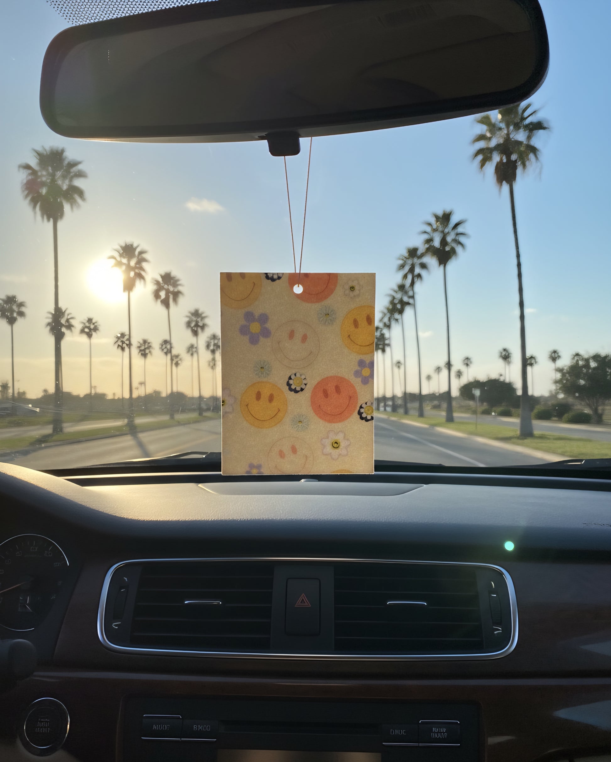 Transport yourself to a delightful garden with Smiles and Flowers, the perfect car companion. Enjoy the cute aesthetic of the felt design while experiencing a 100% fragrance-free drive. Choose your own happy scent and let the smiles and flowers do the rest. Drive fresh, drive happy.