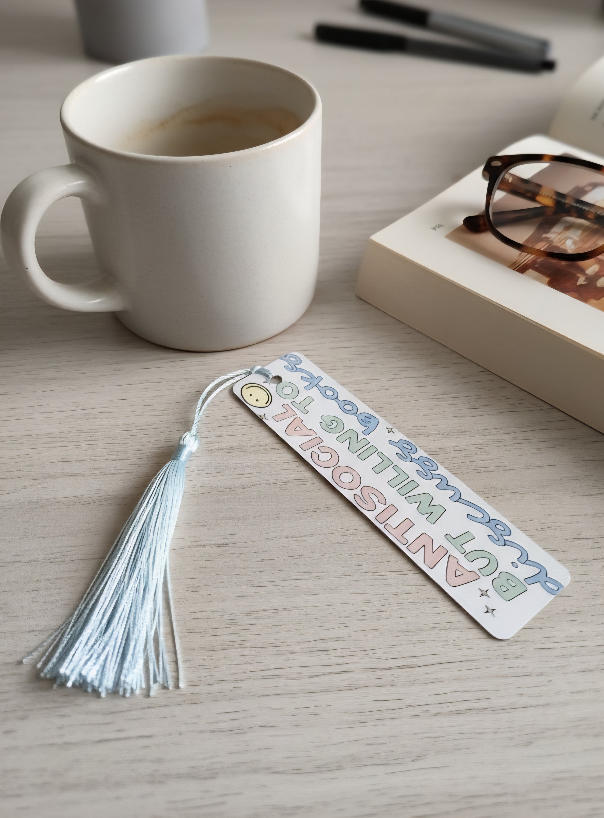 Elevate your reading experience with "Willing to Discuss Books." This collection features a sleek metal bookmark, pastel colors, and witty quotes that will keep booklovers entertained. Enhance your relaxation time with a touch of humor and style.